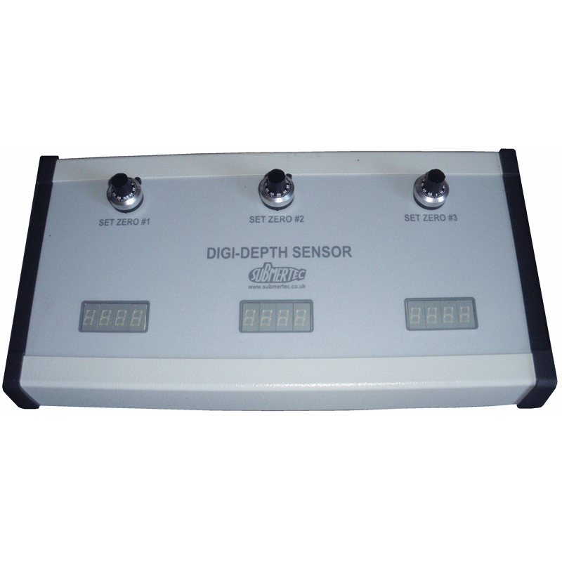 An easy to use and rugged digital depth measuring system consisting of high accuracy pressure probes, underwater cables and a desktop display unit with triple digital displays.