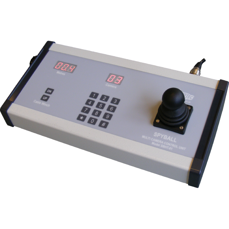 Control of cage mounted winches can be used to change Spyball depth and a display on the panel shows current Depth in metres. A single button press switches between Spyball and Surface Camera pictures.