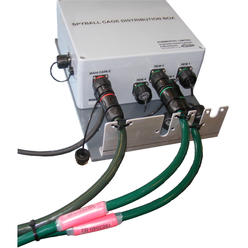 Wet mateable underwater connectors on the Remote Transceivers are provided for connection to the Distribution box, Spyball camera, depth control Winch and Surface Camera.