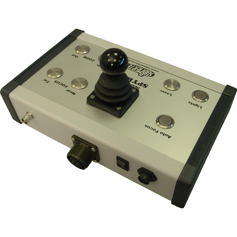 In addition to camera controls and joystick, two select buttons allow the operator to choose which Spyball is under control.